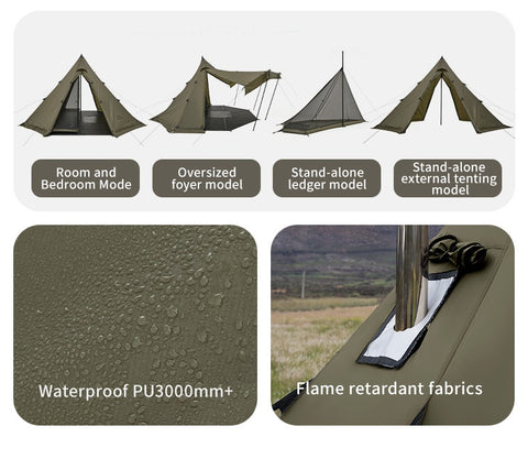Dette er et åttekantet lavvo-telt (pyramidetelt) spesielt utviklet for vintercamping og bruk av ovn. Teltets viktigste egenskap er den innebygde gjennomføringen for pipe, laget av et innovativt flammehemmende og selvslukkende materiale som gjør det trygt å fyre innendørs.