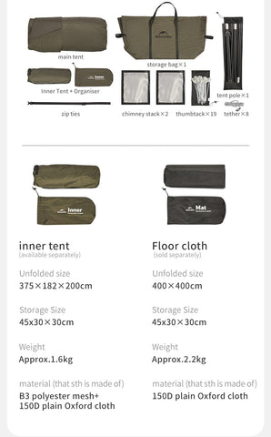 | Størrelse (oppslått) | 400 x 400 x 250 cm |