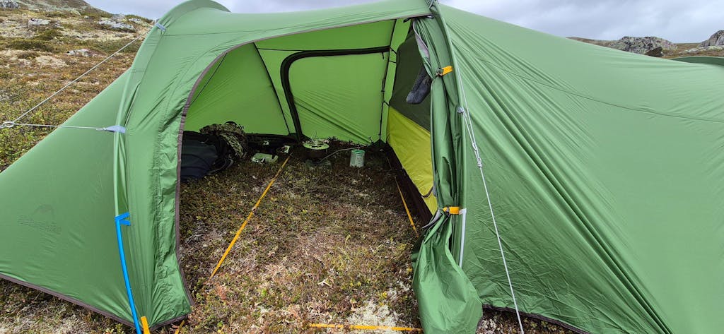 Lettvekts 3-manns tunneltelt fra Naturehike, vindstabilt med aerodynamisk design. Teltet har to effektive ventiler som gir god ventilasjon. Stort fortelt til matlaging og god plass til bagasjeoppbevaring eller sykler. Forteltet har to innganger.
